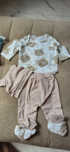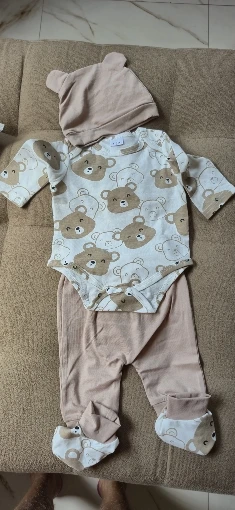 Give your baby a cute and comfy look with this charming Little Bear 4-piece set – a must-have for your little cub’s wardrobe!