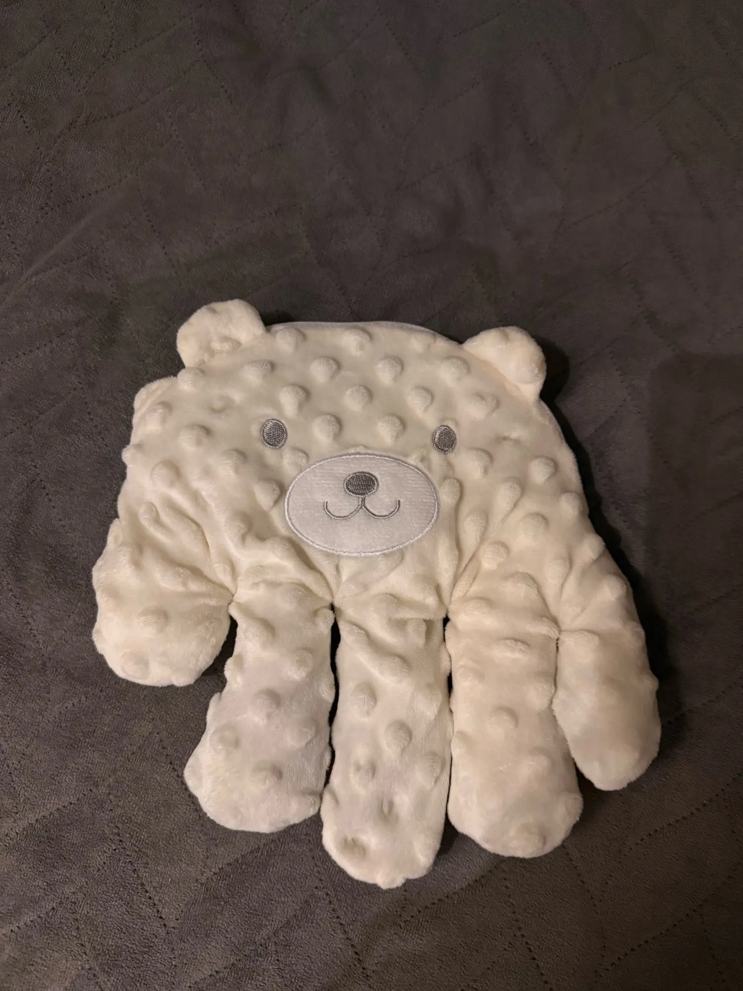 Encourages sensory play thanks to its soft, hand-shaped design.